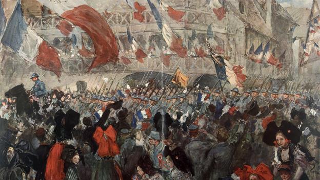 On 28 July 1914, Austria-Hungary declared war on Serbia, and the tenuous peace between Europe’s great powers collapsed. On 29 July, Austro-Hungarian forces began to shell the Serbian capital of Belgrade, and Russia, Serbia’s ally, ordered a troop mobilization against Austria-Hungary. France, allied with Russia, began to mobilize on 1 August . France and Germany declared war against each other on 3 August. After crossing through neutral Luxembourg, the German army invaded Belgium on the night of August 3rd, prompting Great Britain, Belgium’s ally, to declare war against Germany.